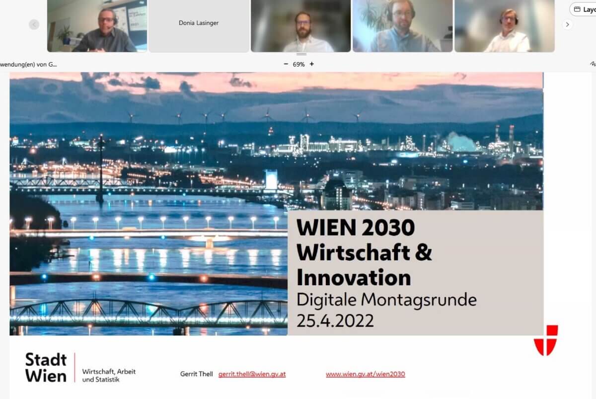 Bei der digitalen Montagsrunde am 25. April haben wir uns der Strategie „WIEN 2030 – Wirtschaft und Innovation“ gewidmet und spannenden digitalen Leitprojekten daraus.